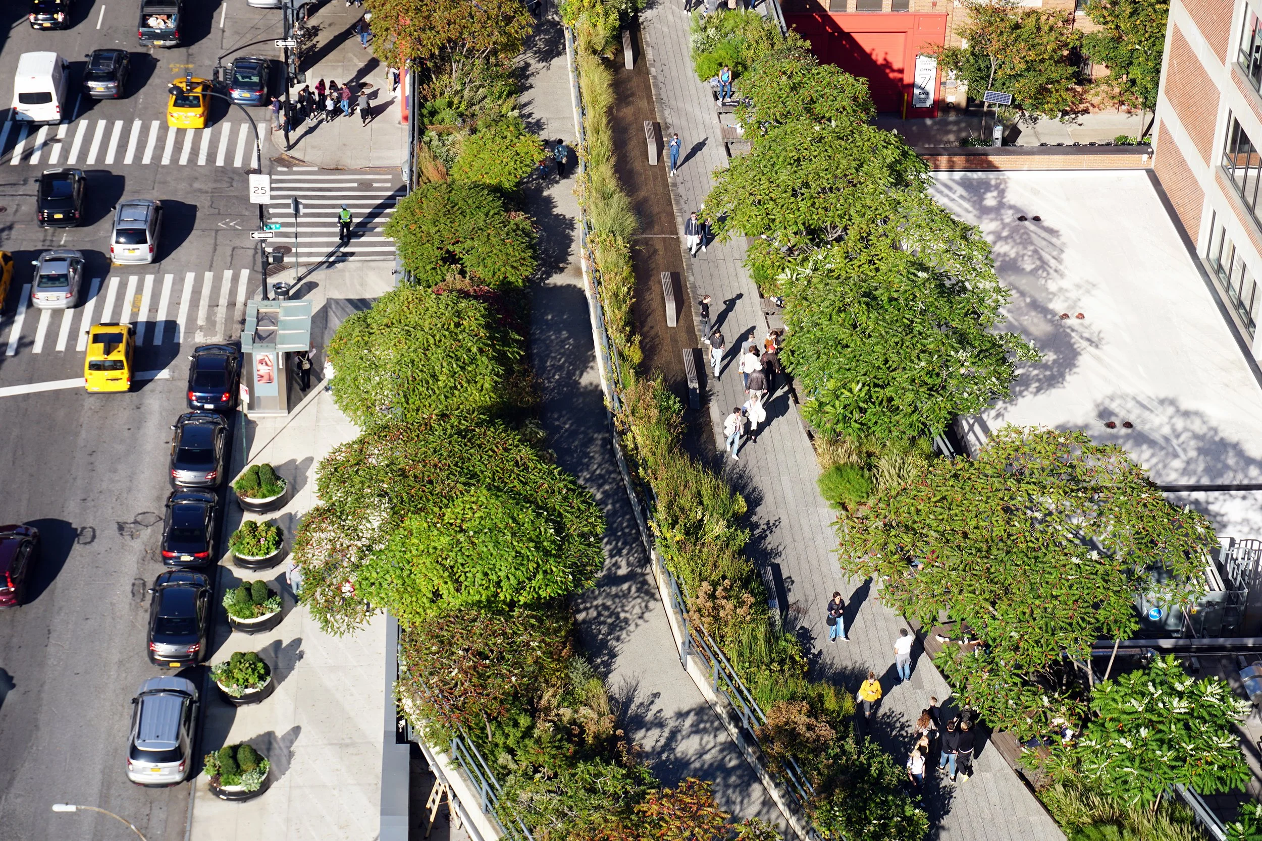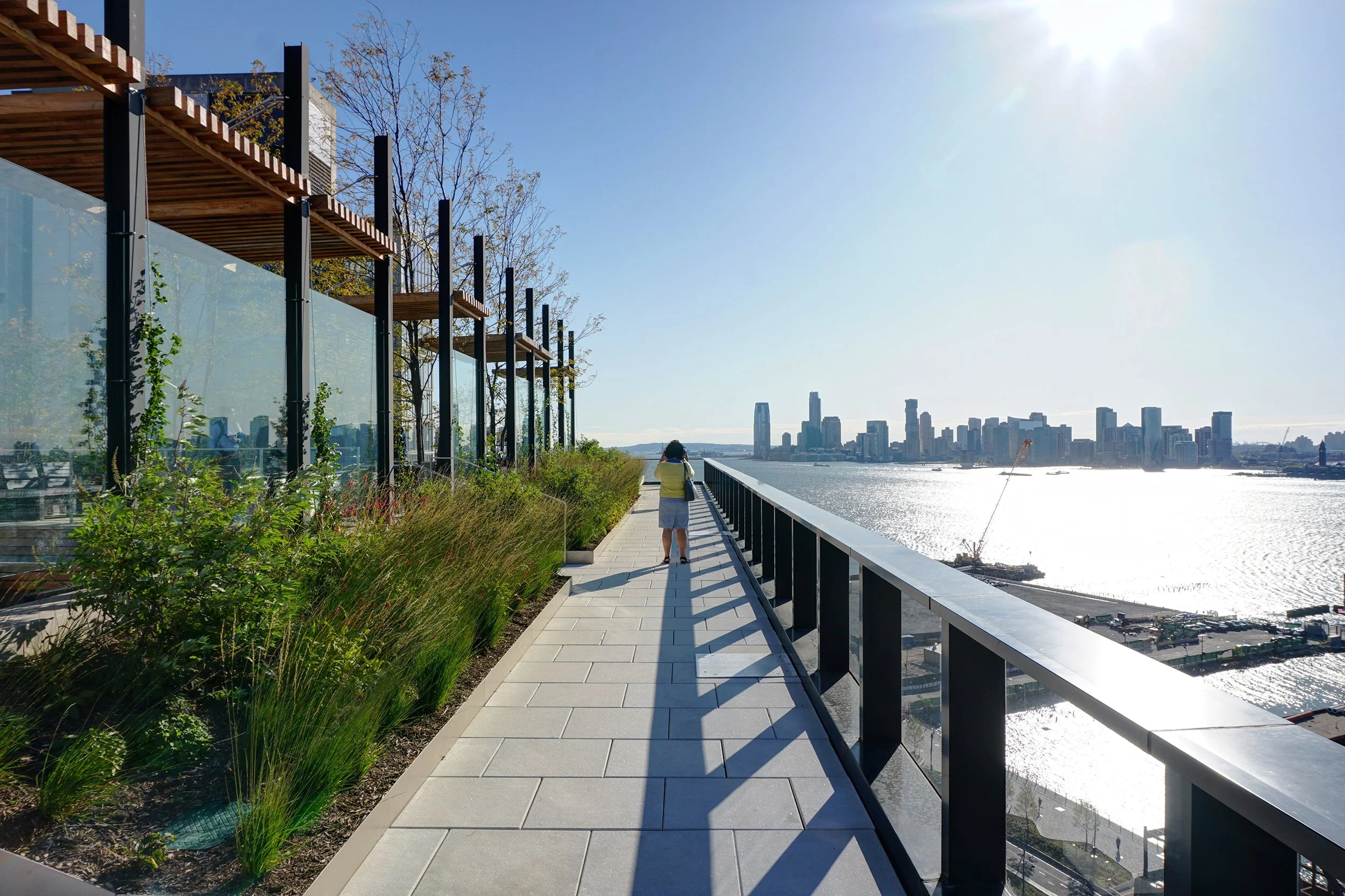 Our next Archtober site is called Solar Carve, a spec office building located off the High Line just a few blocks north of The Standard. The concept of the building is pretty simple and fairly smart- it maxes out its allowable volume but also cuts (or possibly carves) away its corners to minimize its affect on the neighboring High Line Park. Designed by Studio Gang, Jeanne’s Gang’s wonderfully named office, it’s a wonderful, well detailed building inside at a great location with killer views, although its best amenity is actually outside. Tenants only have access to a private roof garden where the river and the city all look close enough to touch.