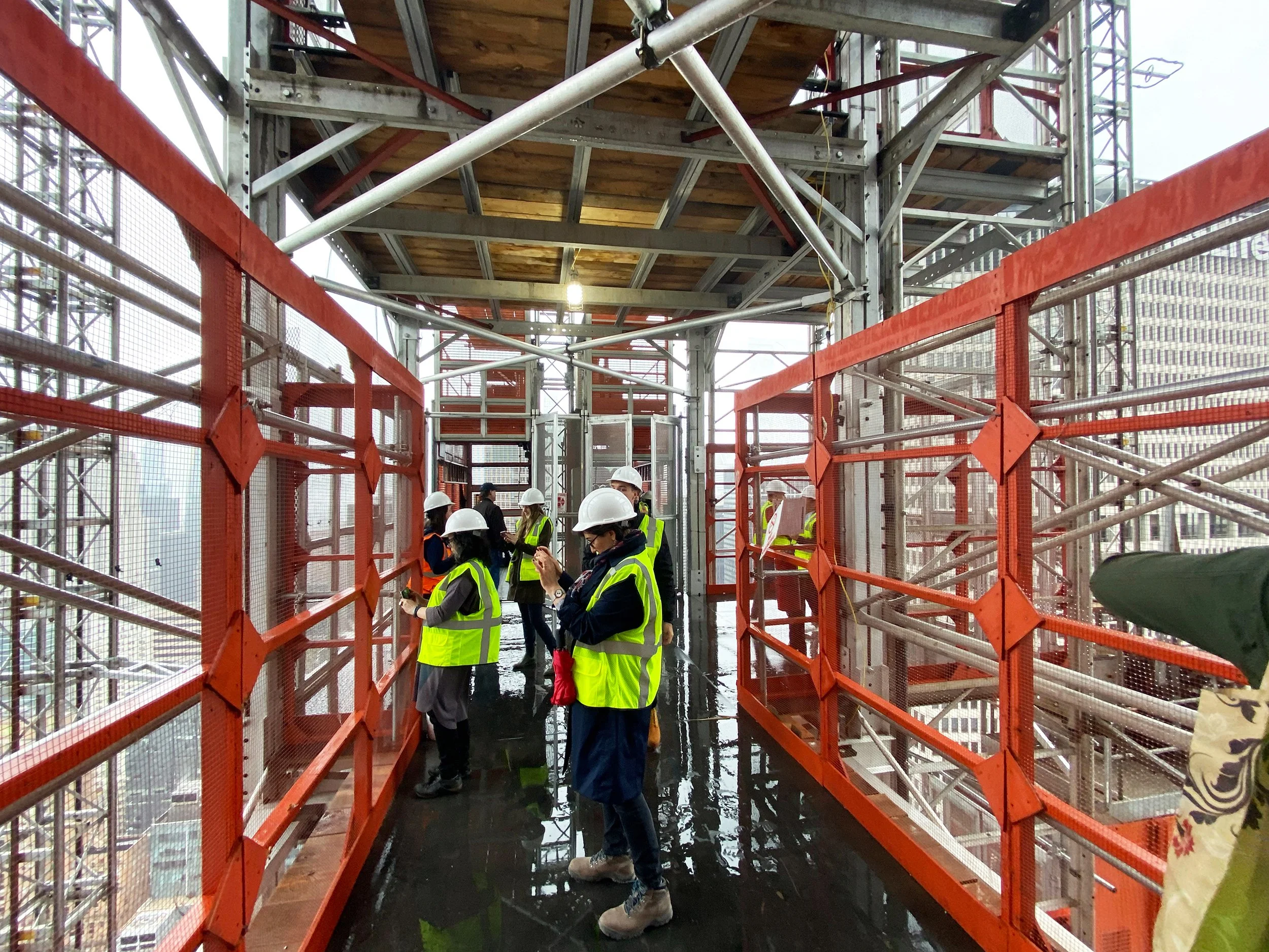 Archtober is a month long event sponsored by the local New York City AIA Chapter and it’s all about architecture. Its feature event is something called the “Building of the Day,” a tour of a specific building somewhere in the city. This year I was lucky enough to be able to attend four of these tours, and the first was a construction tour of Kohn Pederson Fox’s One Vanderbilt, a skyscraper under construction right next to Grand Central Terminal that will top off at 1,401 feet high, taller than the Empire State Building and the fourth tallest tower in Manhattan. On our construction tour, on a cold rainy October, er, I mean Archtober afternoon, we learned about the structure and the terracotta facade and rode an (always) terrifying construction elevator to a higher floor so we could come face to face in the rain with the Chrysler Building, at least for a moment. Luckily we will one day be able to revisit these views since the building will come with a public observation deck which, at 1,000 feet high, should put you right about at the height of the top of the Chrysler Building’s spire. and have an glass floor outdoor observation deck just a few feet lower than that other one on the far, far west side.