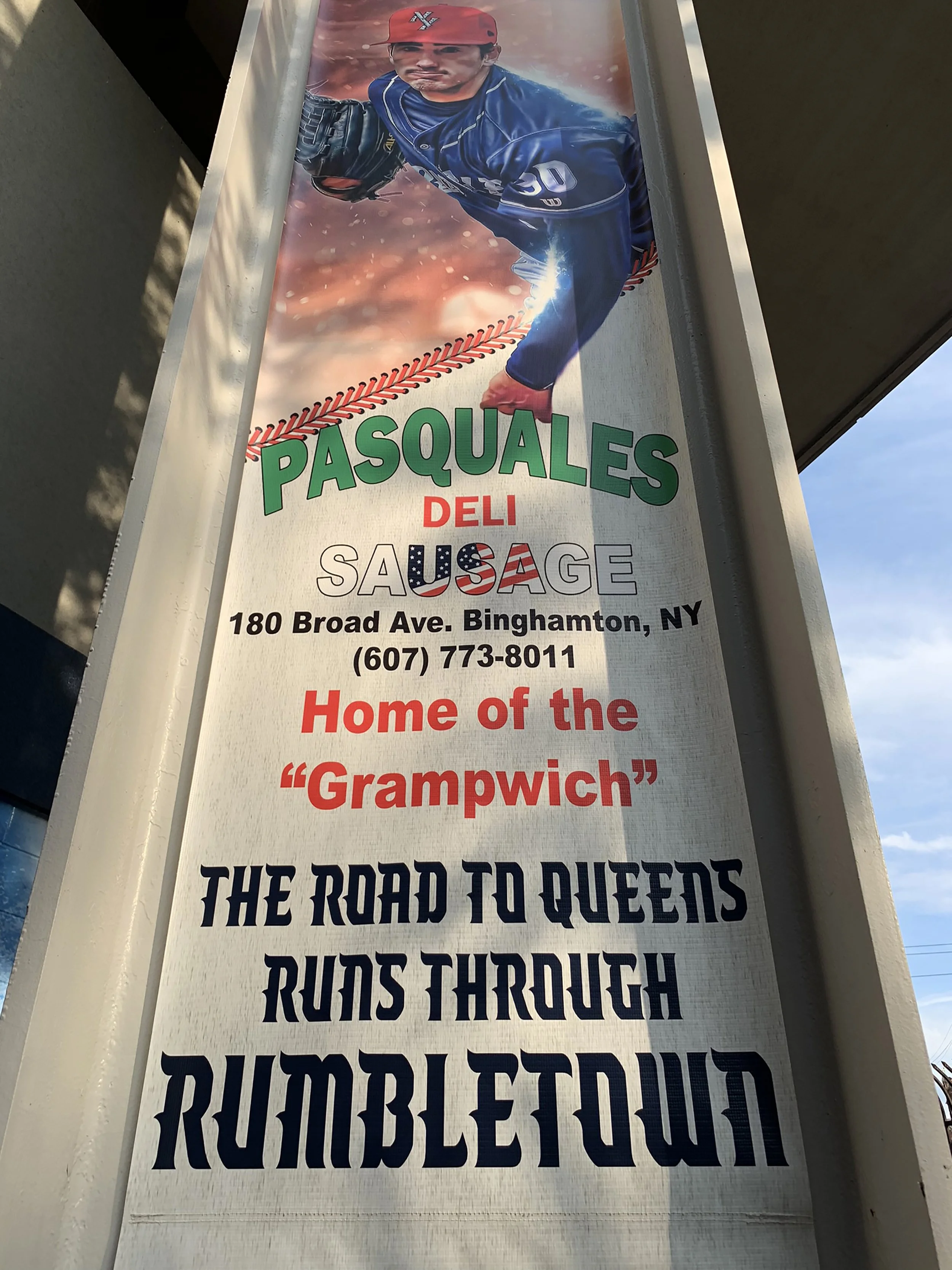 We’re finally out of Scranton and have made it as far as Binghamton, New York, a miserable hour (or so) drive north of Scranton on I-81. Binghamton feels a lot like Scranton but somehow with less going on, a claim which, on its face, almost sounds impossible. Luckily Binghamton does have a quite nice minor league stadium to watch their baseball team, the Rumble Ponies, a double A affiliate of your New York Mets. So in a way, I guess the road to Queens really does run through Rumbletown, even though the actual route (I-81 South to I-380 South to I-80 East to I-95 North to I-678 South) feels a bit convoluted at best.