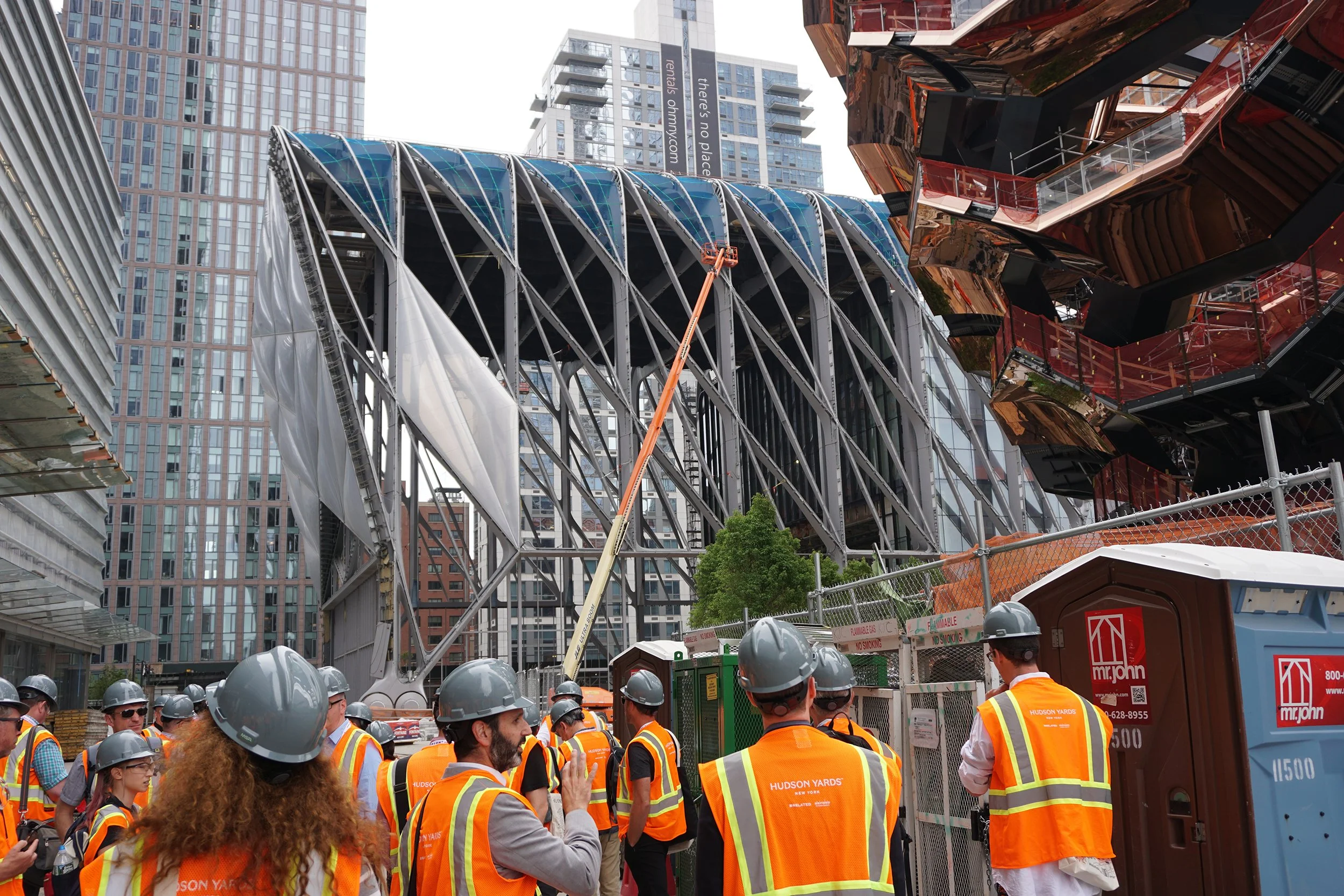 Sure it was great to get to see the Hudson Yards Preview Center and it was a once in a lifetime experience to hear from all of the architects involved at the same time, but the best thing about that A’18 tour back in June 2018 was a quick chance to put on a hard hat, walk the future plaza and see up close what was going on with Vessel and the Shed, still ten months away from opening day.