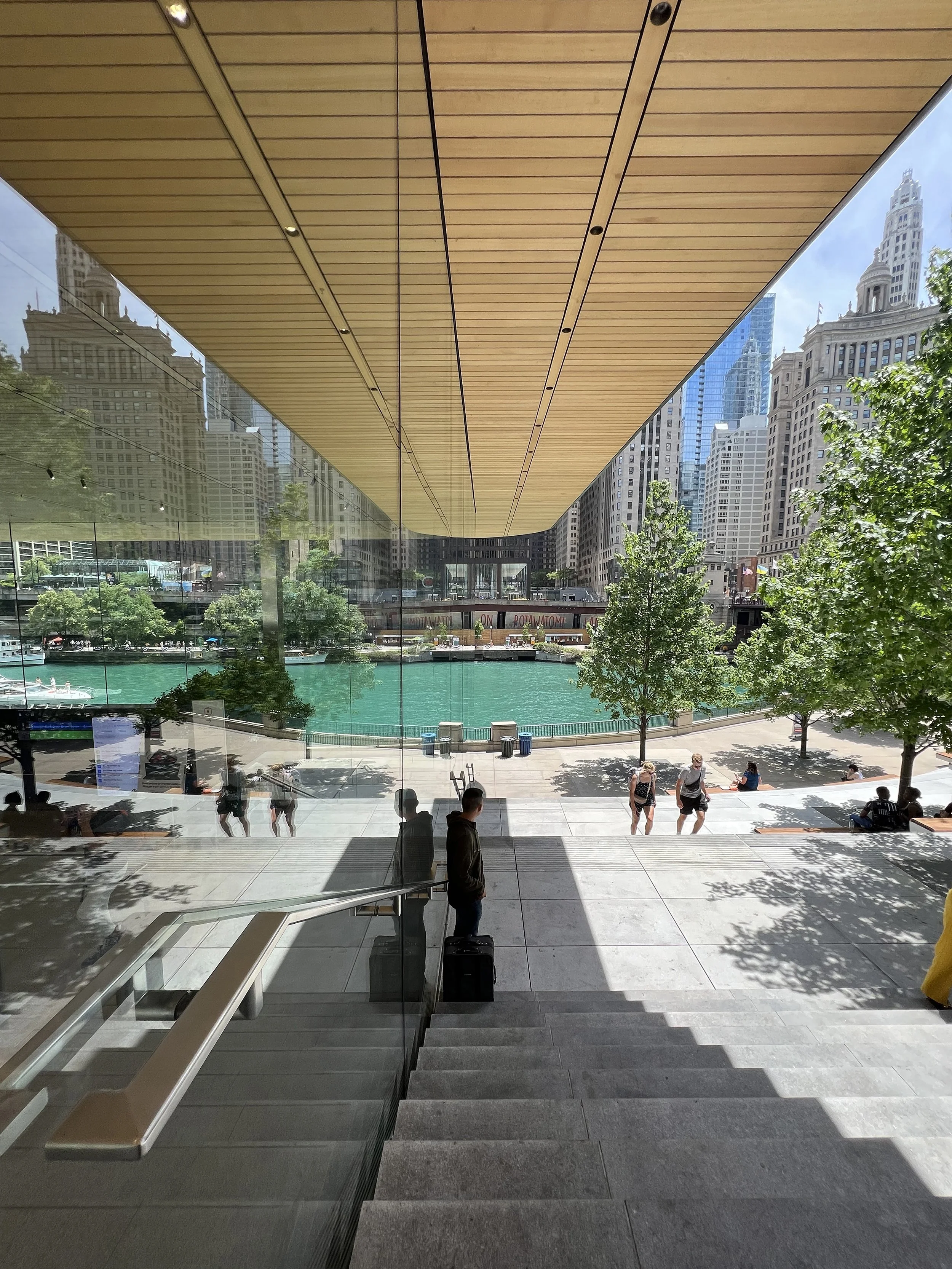 I don’t want to slam the good folks at the University of Chicago ET109 tour, but their tour simply was, well, let’s just say not great. There was a lot to see on a hot day, almost everything was seen from the outside only, and most of the tour felt as it was something I could have done on my own by just finding some sort of self guided tour online. Sure it was great to see campus building designed by the usual Chicago suspects of Mies van der Rohe, Helmut Jahn and Jeanne Gang, but the tour really only got interesting once some New York outsiders entered the picture. This is the David Rubenstein Forum designed by Diller, Scofidio + Renfro, the only building that the Et109A tour entered, unless you count the campus gift shop where we started.