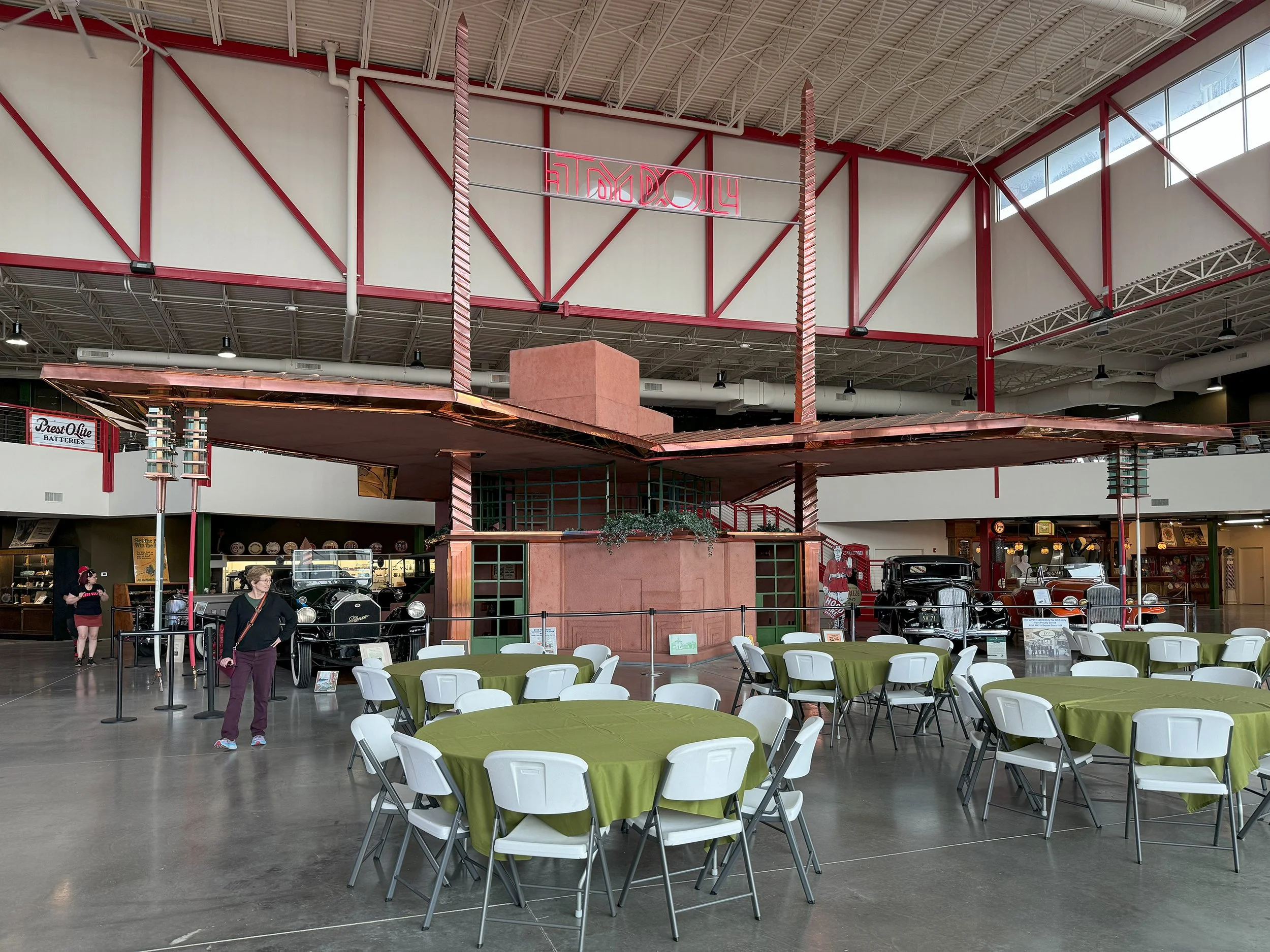 The second rebuilt building (and the third Wright site) is inside the Pierce Arrow Museum, where not only can you see old cars but you can also see a new old Frank Lloyd Wright building. This is a gas station for Tydol Gas (the really hard to read sign does actually say Tydol) that was built only a few years ago from the original design. It’s located in a busy space and is hard to appreciate, I feel it would have been far more impressive under the blue skies of Route 66 in the painted desert of Arizona than it is inside a building with all that unforgiving and distracting red and white trim behind it.