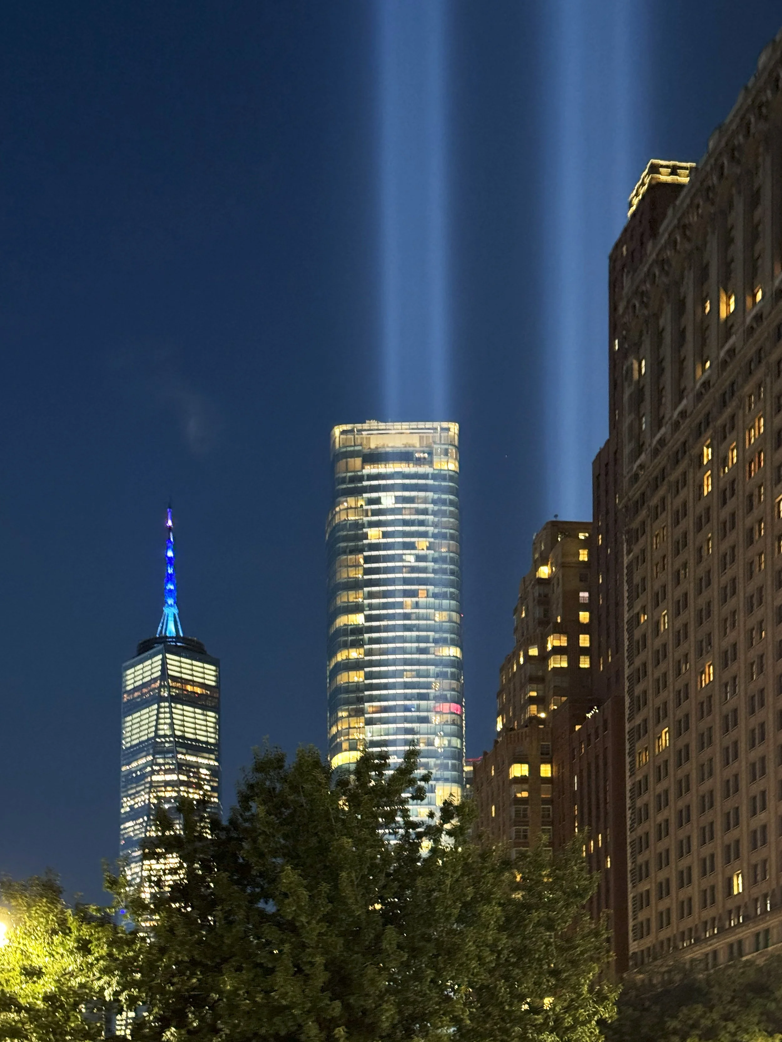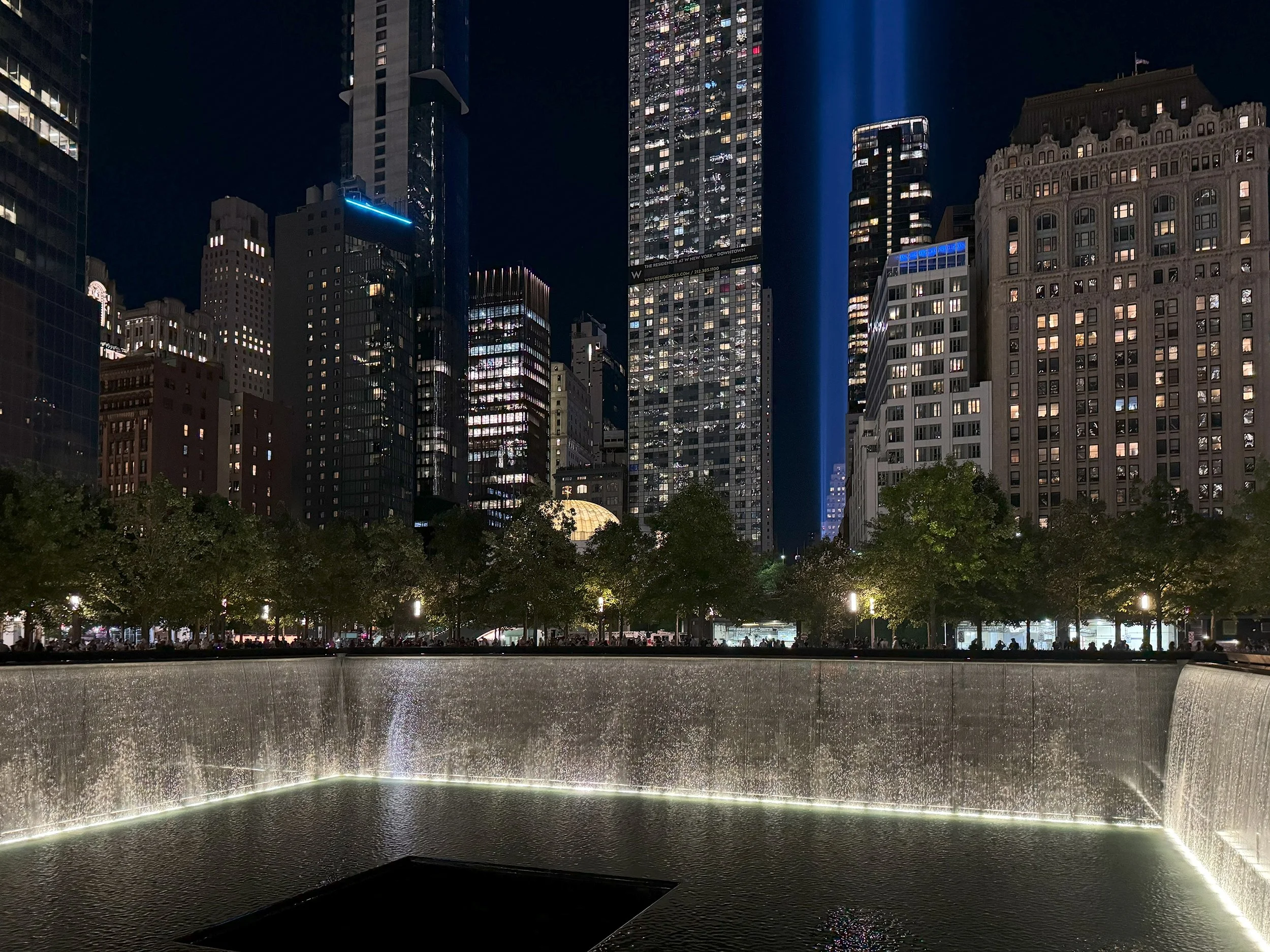 Every time I do this, it always makes me wish the actual light towers were somehow built into the actual memorial. They’re now in the wrong place and much smaller (though obviously far taller) than the actual towers. When I think of the World Trade Center towers I remember seeing them from different parts of the city- looking down Sixth Avenue or looking up outside the Winter Garden or how one tower seemed to be dead center on Fulton Street- and I think of how even more powerful Tribute in Light would be if it was exactly where I remembered it.