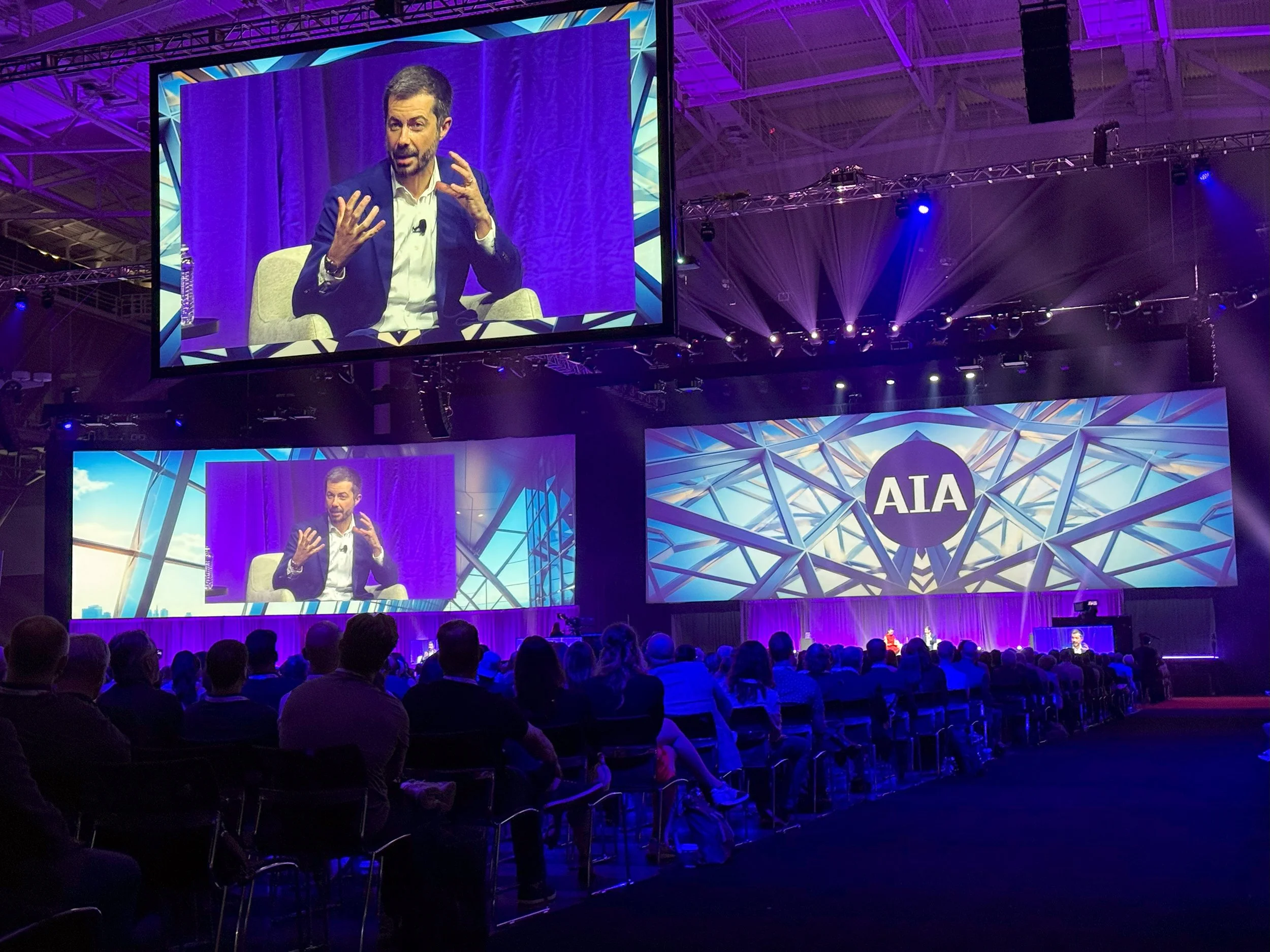 You wouldn’t know it from my slideshows, but AIA25 is more than just tour after tour after tour. There is a massive trade show (not pictured), all sorts of seminars (not pictured), networking opportunities (not pictured) and keynotes (pictured). The keynote speakers were a big step up from last year and featured an AI expert, an influencer and an infrastructure expert. The infrastructure expert was former US Secretary of Transportation Pete Buttigieg, whose presentation I went in with high expectations that he still managed to exceed. In a fair and just world he would be in a high leadership position right now, but until then, we’ll have to settle for him being a kick ass keynote speaker, probably the best one I’ve seen at an AIA conference to date.