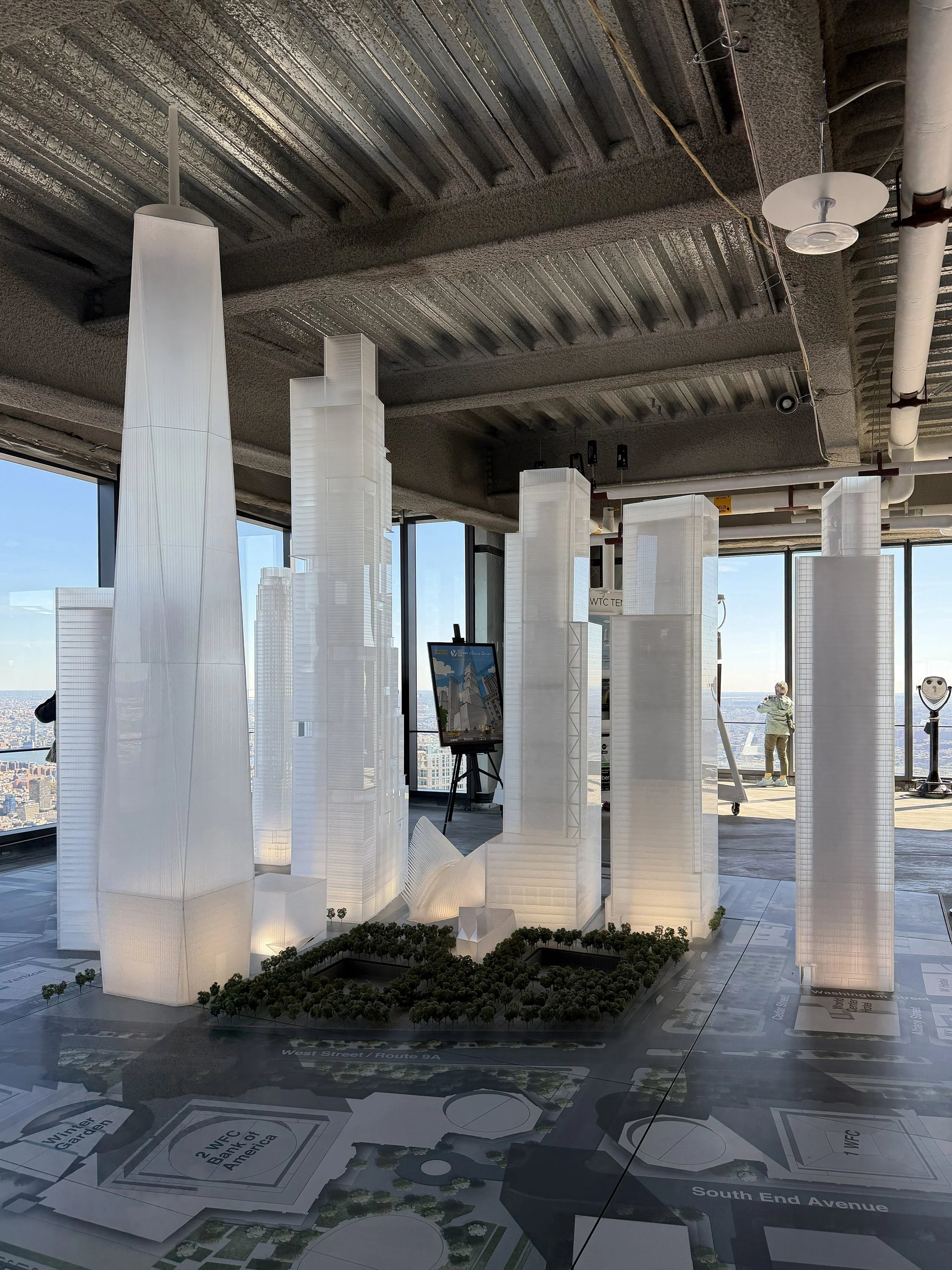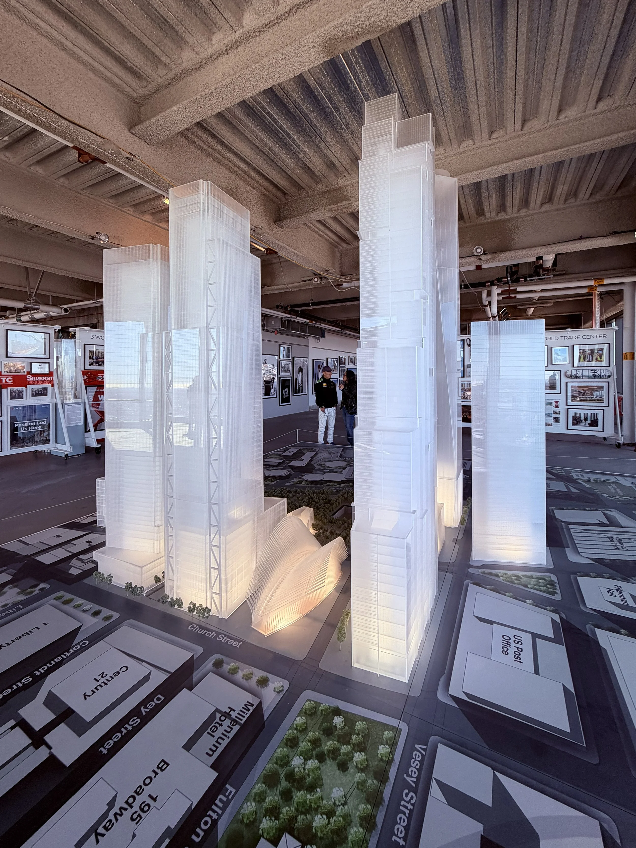 This year’s first site was a great one to start with, a visit to the 80th (and then the 79th) floor of Roger’s Stirk Harbour’s 3 World Trade Center to see the WTC Rebuilding Gallery and Artists Studios. The WTC Rebuilding Gallery featured some amazing models, including this one that shows the full buildout with giant models all of the buildings, even the yet to be built 2 and 5 WTC(s).