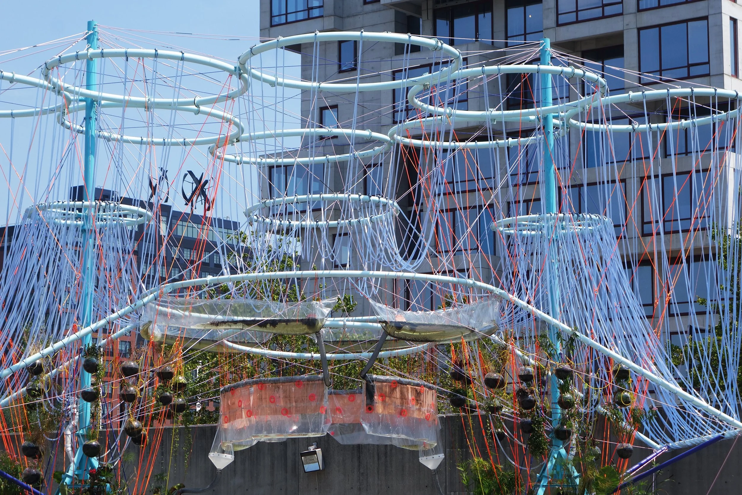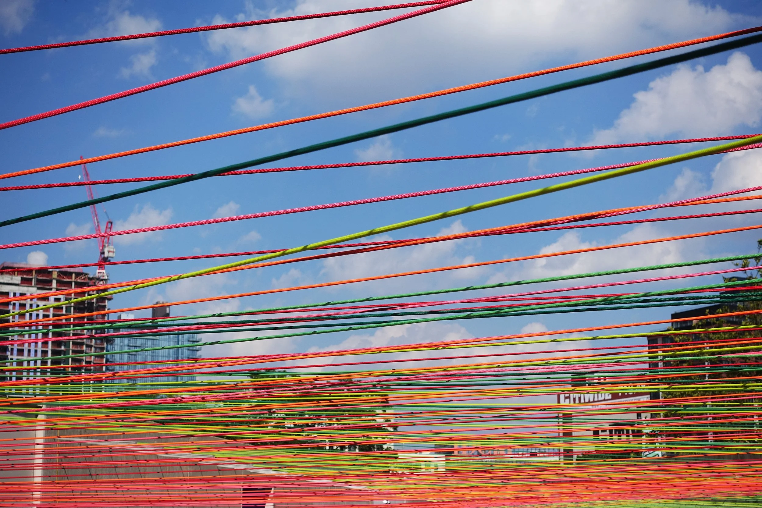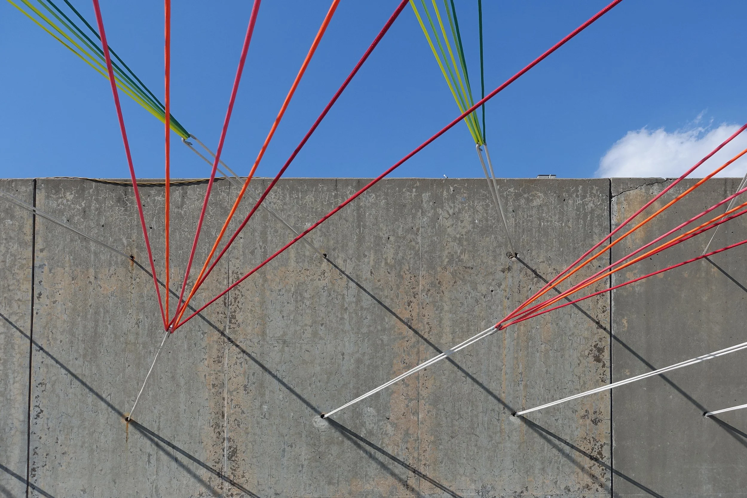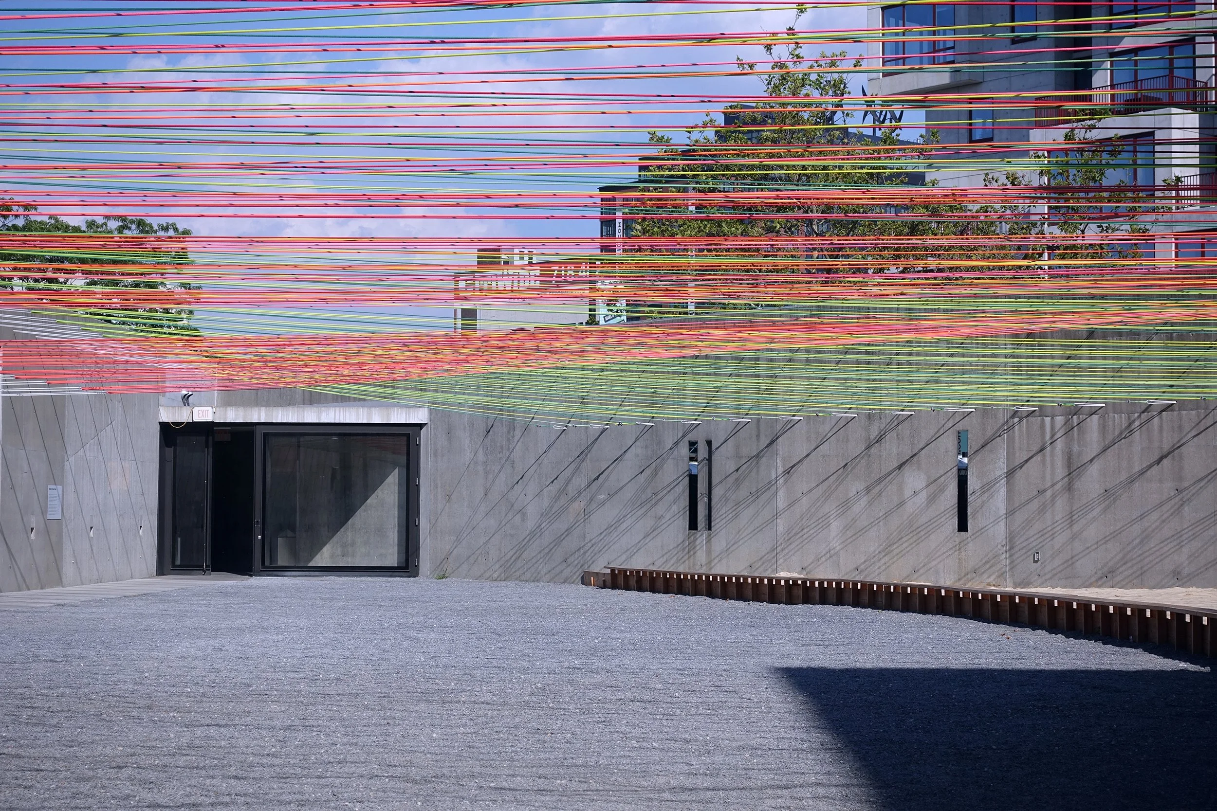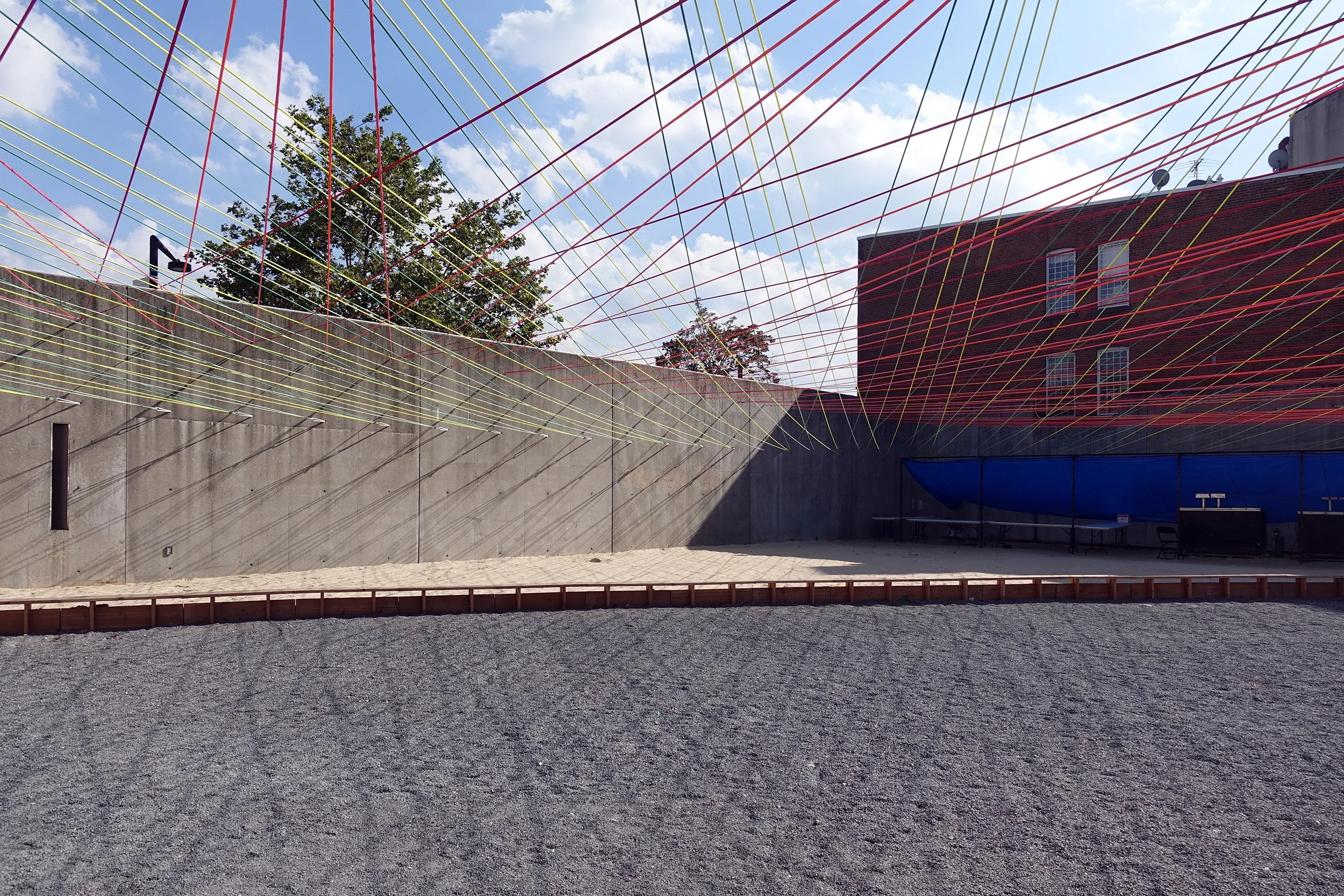 This year’s Warm Up canopy is Weaving the Courtyard by Escobedo Soliz Studio and it’s well, not terrible. I take that back. It’s terrible as a canopy because it’s not actually a canopy. It is hot as hell in Long Island City in July and August, so just looking up at a bunch of admittedly pretty color ropes isn’t going to do a damn thing. Aesthetically it is interesting, and the shadows are nice, but it is not (and I repeat not) a canopy.