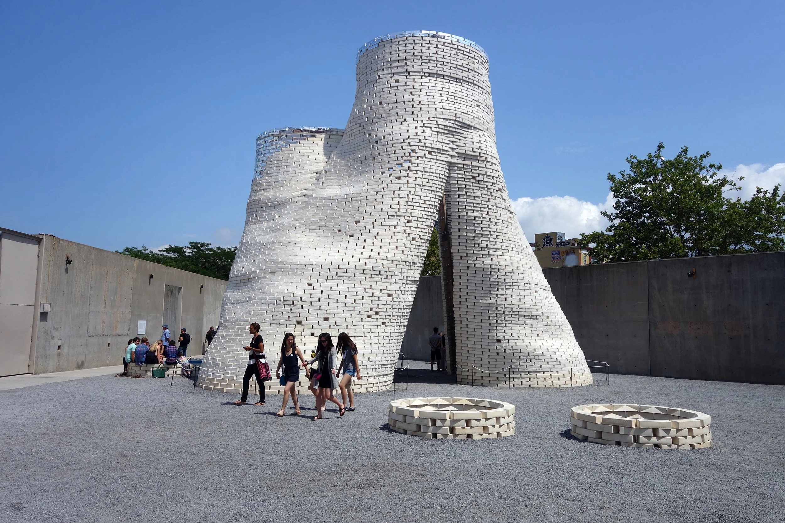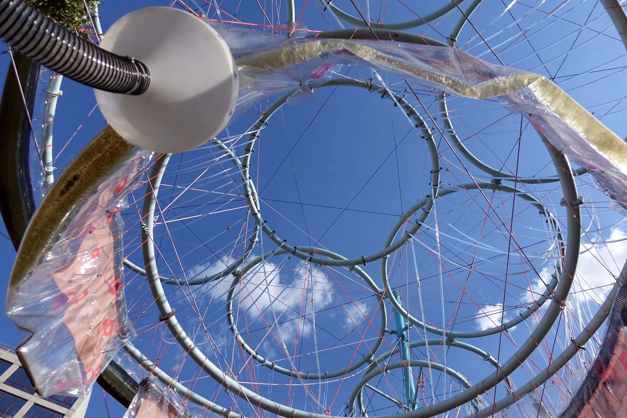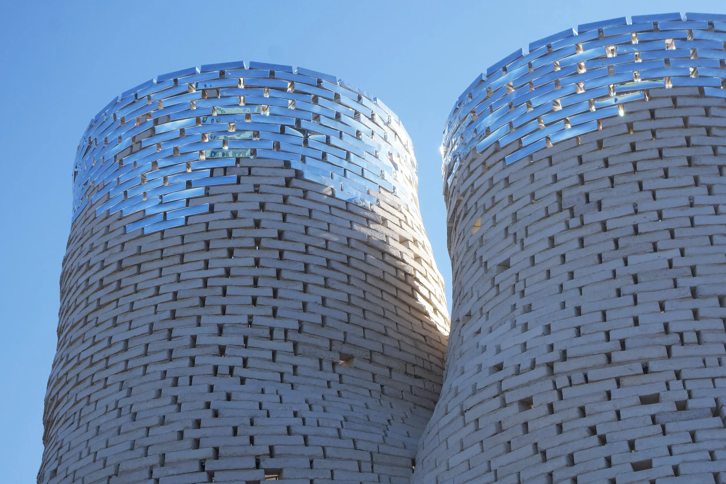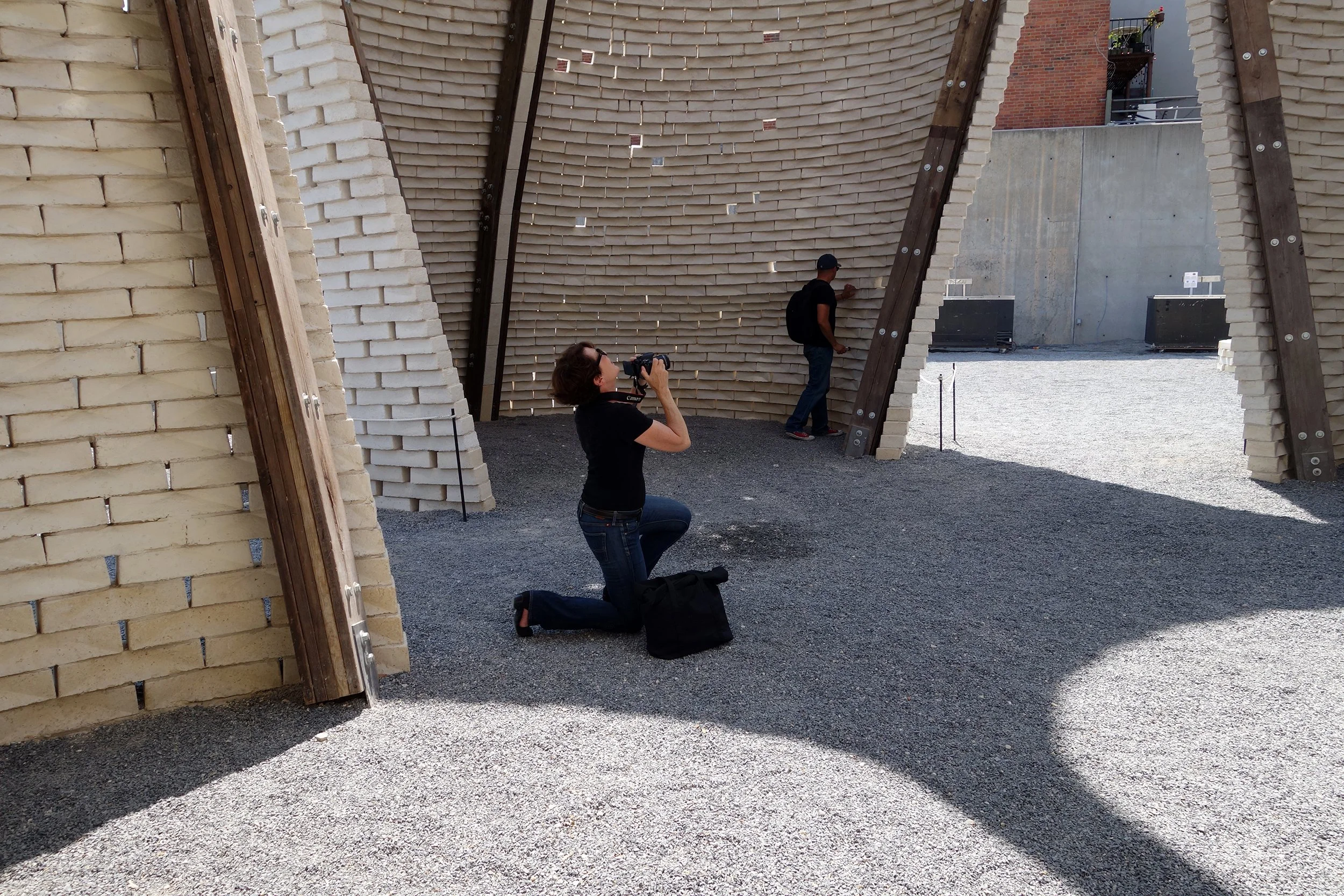 This year’s Warm Up design is called Hy-Fy by a group of people that think it’s a good idea to call themselves The Living. It’s a tri tower of grown bricks (mushrooms and corn stalks) that’s topped off with the molds used to create the bricks, coated in what 3M claims to be the most reflective film ever created. It is pretty reflective so who am I to question 3M.