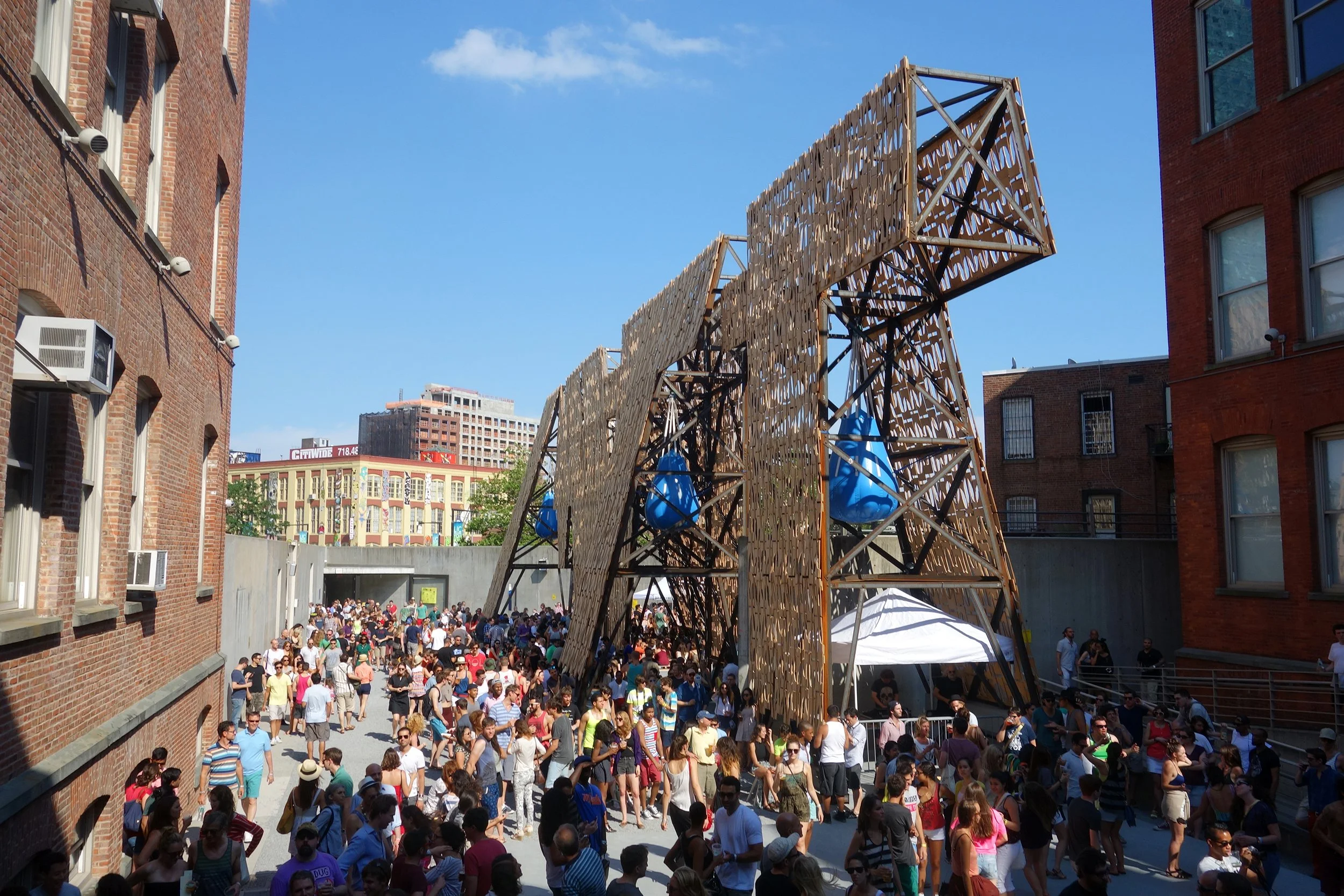 I try every year to go see the PS1 summer installation and needed to see this one twice to understand whether I liked it or not. One of those times was at Warm Up (the annual dance/stand around party in PS1’s courtyard) and the other was on an off day, when PS1 reclaims it’s creepy, haunted schoolhouse vibe. The truth is that Hy-Fy creates some wonderful space inside and the organic bricks (which you could probably poke through if you really wanted to) create some really fun effects. That said, Hy-Fy is an awful installation for Warm Up. It’s too small, it doesn’t engage the space, it ignores the other courtyards and it feels more like it’s in the way than that it’s the reason to go to Warm Up. If you decide to go see it this year, skip the crowds and go on an off day and (like me) start looking forward to Warm Up next year instead.